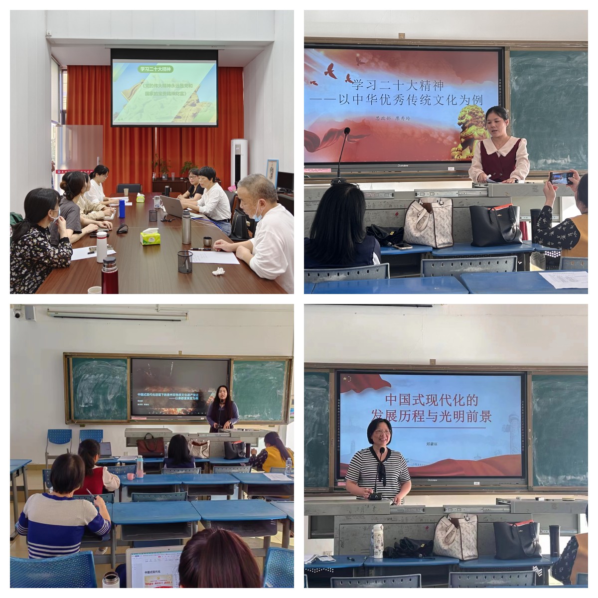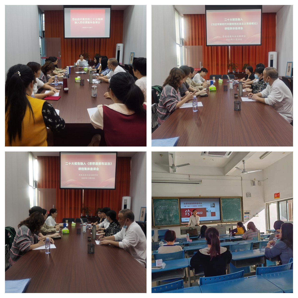 11月29日下午,思政部以教研室为单位,组织全体教师在部门会议室和新教210开展“党的二十大精神进思政课”集体备课会,让党的二十大报告中提出一系列新论断新观点新思想及时进教材、进课堂、进头脑。