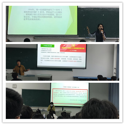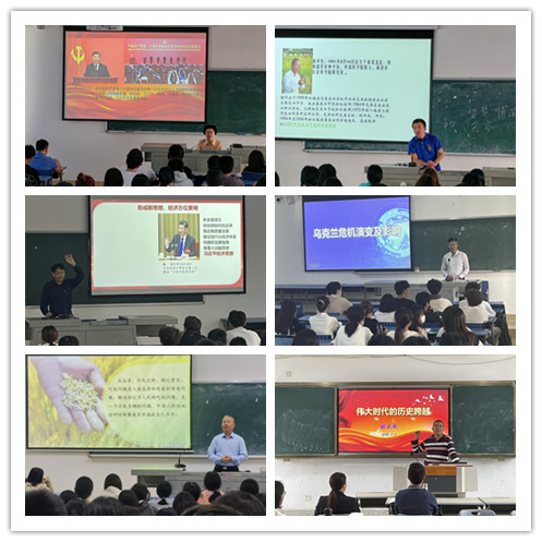 活动期间,学院党委书记周文心、党委副书记、院长黄敬前,党委副书记陈金通,党委委员副院长花文苍、沈永希、张庆武等先后走进“形势与政策”课的教学课堂,以“伟大时代的历史跨越”、“保障粮食安全的中国策”、“乌克兰危机演变及影响”等为主题,为我院师生讲授了一堂别开生面的思想政治理论课。