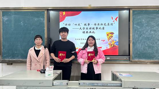 赛前,通过动员和宣传,学生根据比赛活动方案以及思政课上“课前三分钟讲故事”活动要求,对“四史”进行了广泛而深入的学习,并在思政课的“课前三分钟讲故事”活动中得到了锻炼。此外,指导老师对参赛作品的精心指导,使得此次比赛涌现出很多优秀的作品。此次比赛由思政部政治理论教研室主任负责主持,邀请了思政部五位教师做评委,各系部总有16支队伍参赛。经过现场讲故事和评委评审,共评选出一等奖2名、二等奖3名、三等奖5名,其中,信安211班郑建鹏的《民族脊梁》和大数据221李依玲的《峥嵘岁月 永不褪色》荣获比赛一等奖。