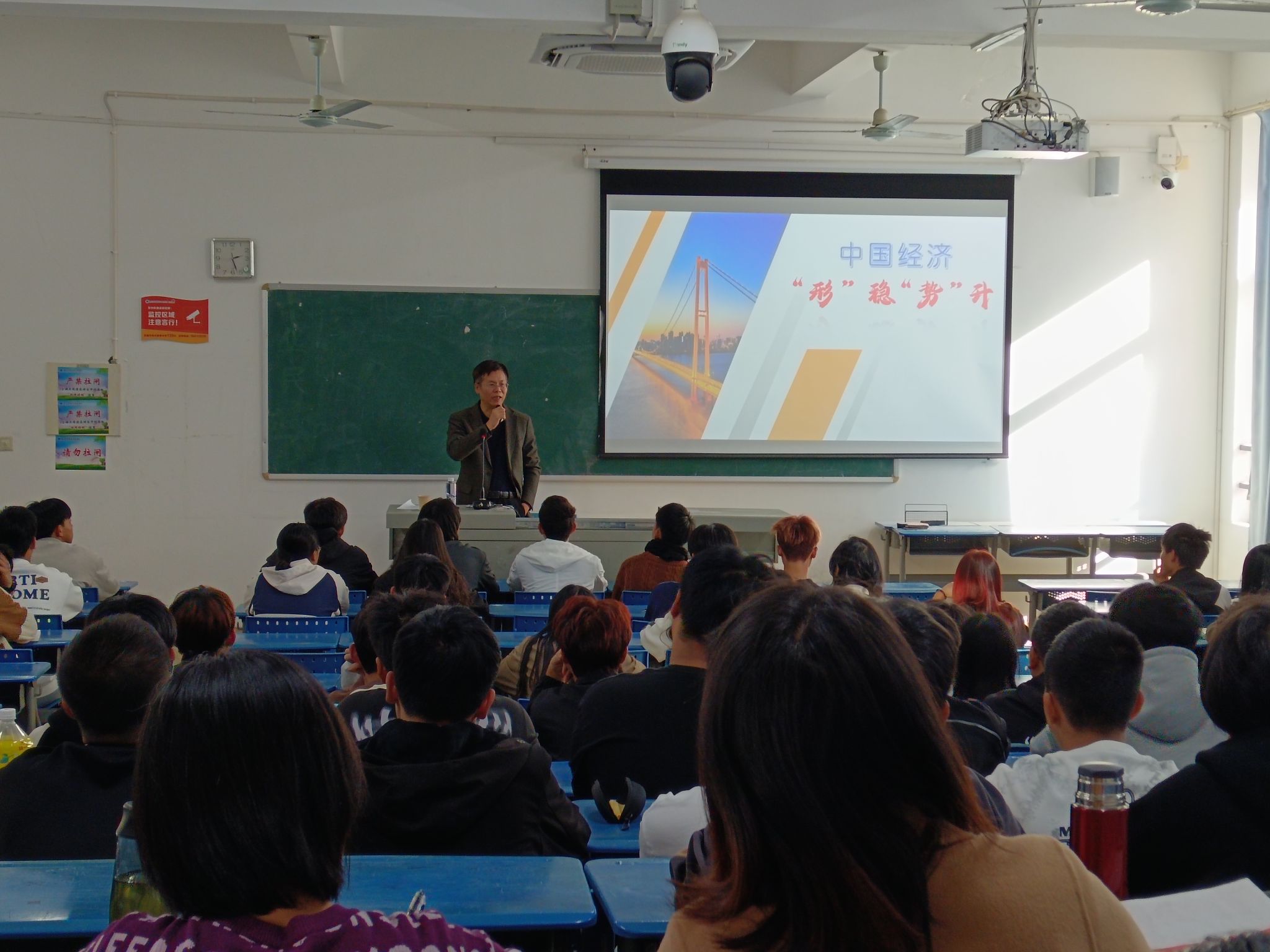 12月8日下午,学院副院长花文苍为应电231、信安231班级学生讲授《中国经济“形”稳“势”升》专题思政课。思政部部分教师参加。
